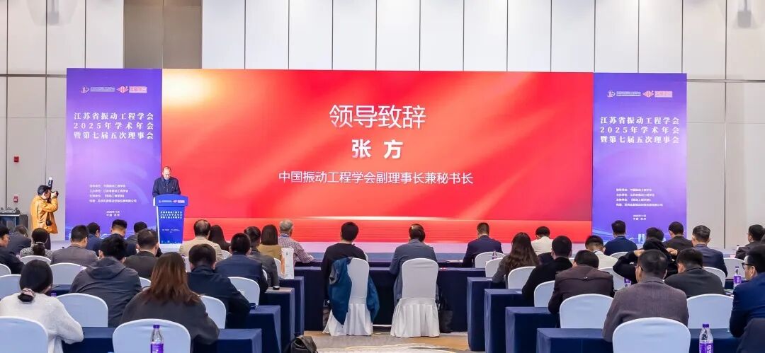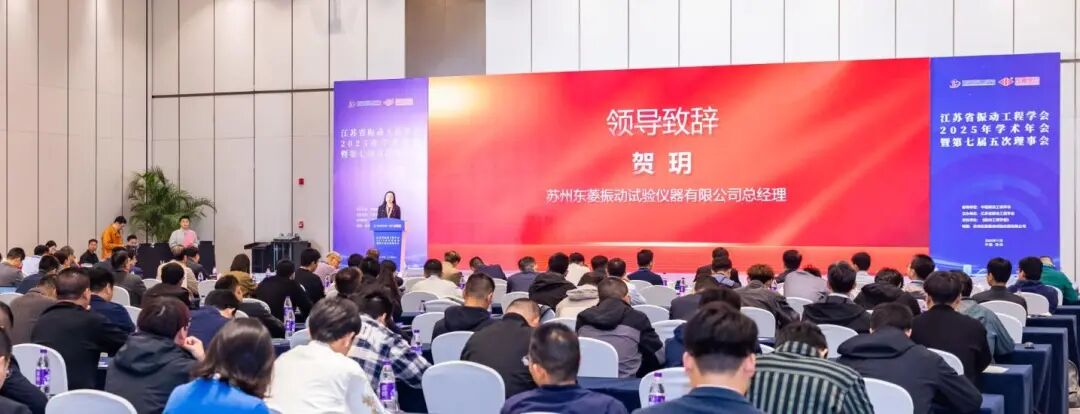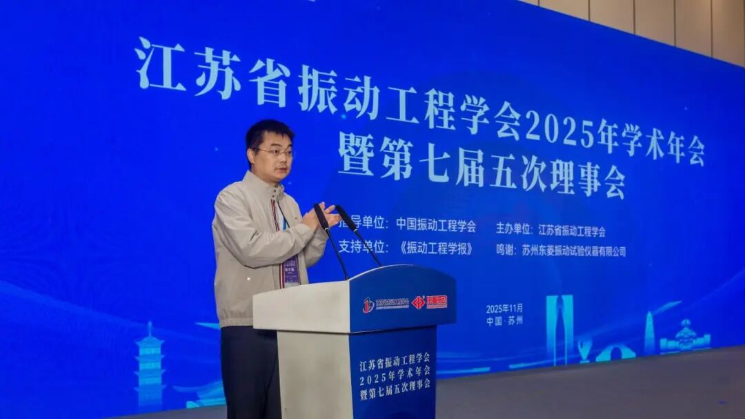 2025年11月1日,由中国振动工程学会指导、江苏省振动工程学会主办、苏州东菱振动试验仪器有限公司及《振动工程学报》支持的江苏省振动工程学会2025年学术年会在苏州顺利召开。江苏省科学技术协会党组成员、副主席冯少东,中国振动工程学会副理事长兼秘书长张方,江苏省振动工程学会理事长费庆国,苏州东菱振动试验仪器有限公司总经理贺玥出席会议并致辞。学会监事会主席陈卫东,副理事长金栋平、杨国来、陈立、李延成,秘书长李彦斌出席会议。开幕式学会副秘书长张大海主持。会议汇聚了来自全省振动工程领域的专家学者、企事业单位科技工作者130余人,共同探讨振动工程领域的最新进展与未来趋势。