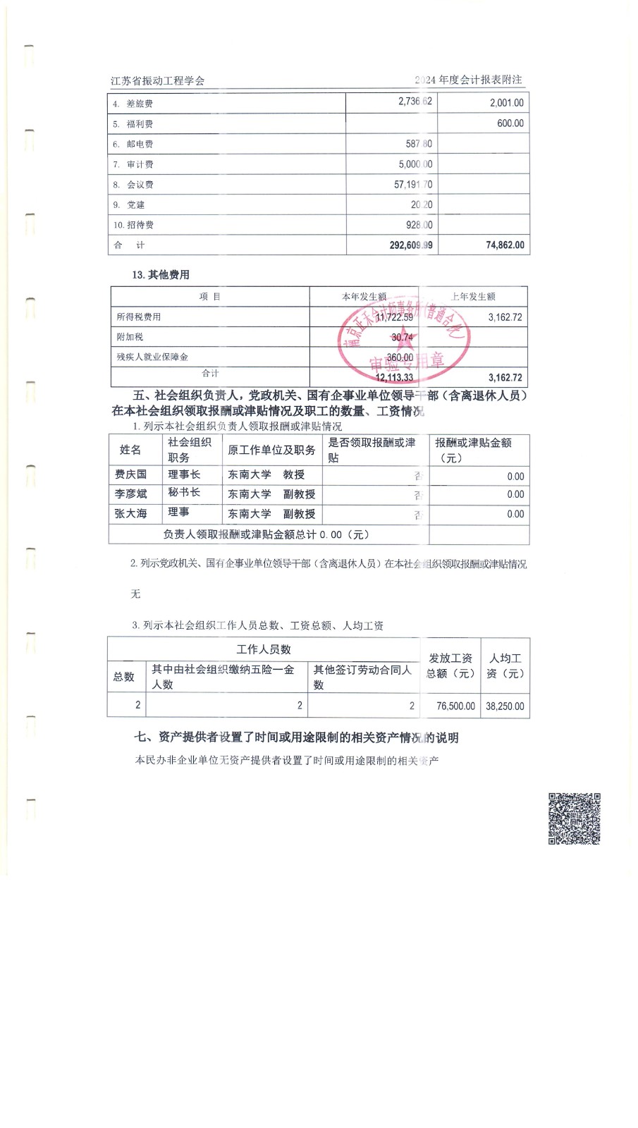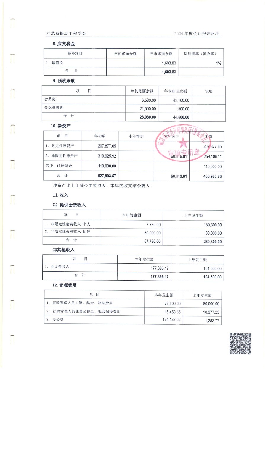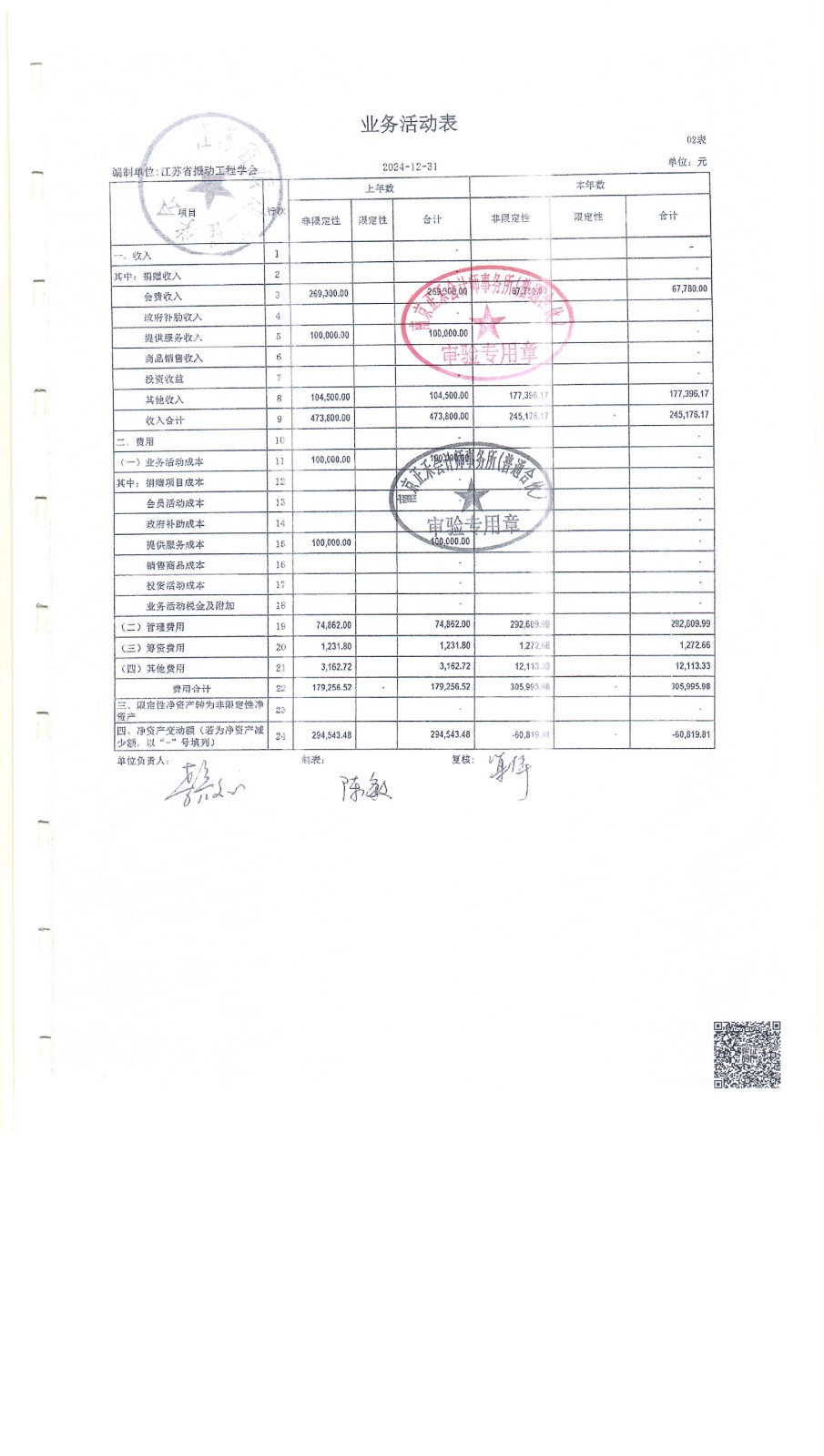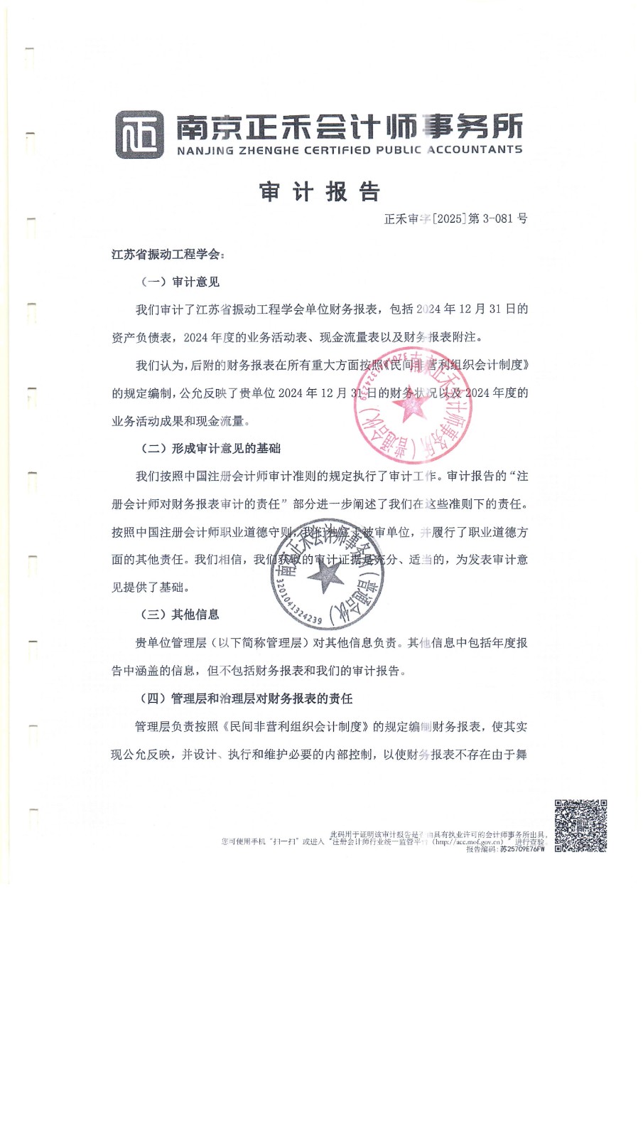 信息公开 | 江苏省振动工程学会2024年度审计报告