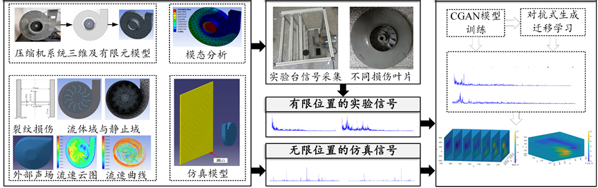 (1)团队聚焦压缩机与鼓风机内两种常见的透平叶片,结合叶片典型的裂纹损伤对声振产生与传播特性、损伤所致声振演化规律进行了深入的研究,提出数据和物理模型联合驱动的叶片声振传播特性分析方法,获得了透平叶片声振传播规律,为传感器的布置优化、特征提取、故障诊断提供理论基础。