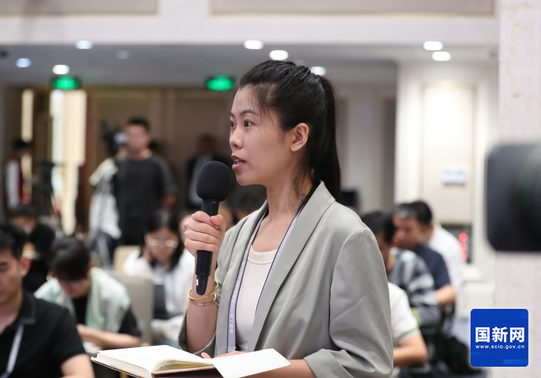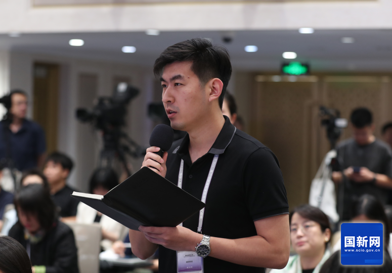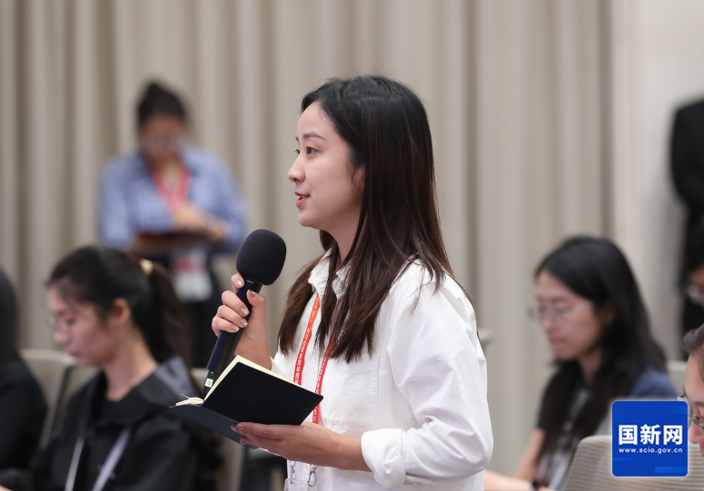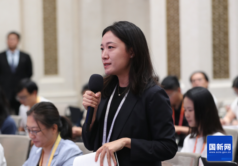 中央广播电视总台央视新闻中心记者提问(刘健 摄)