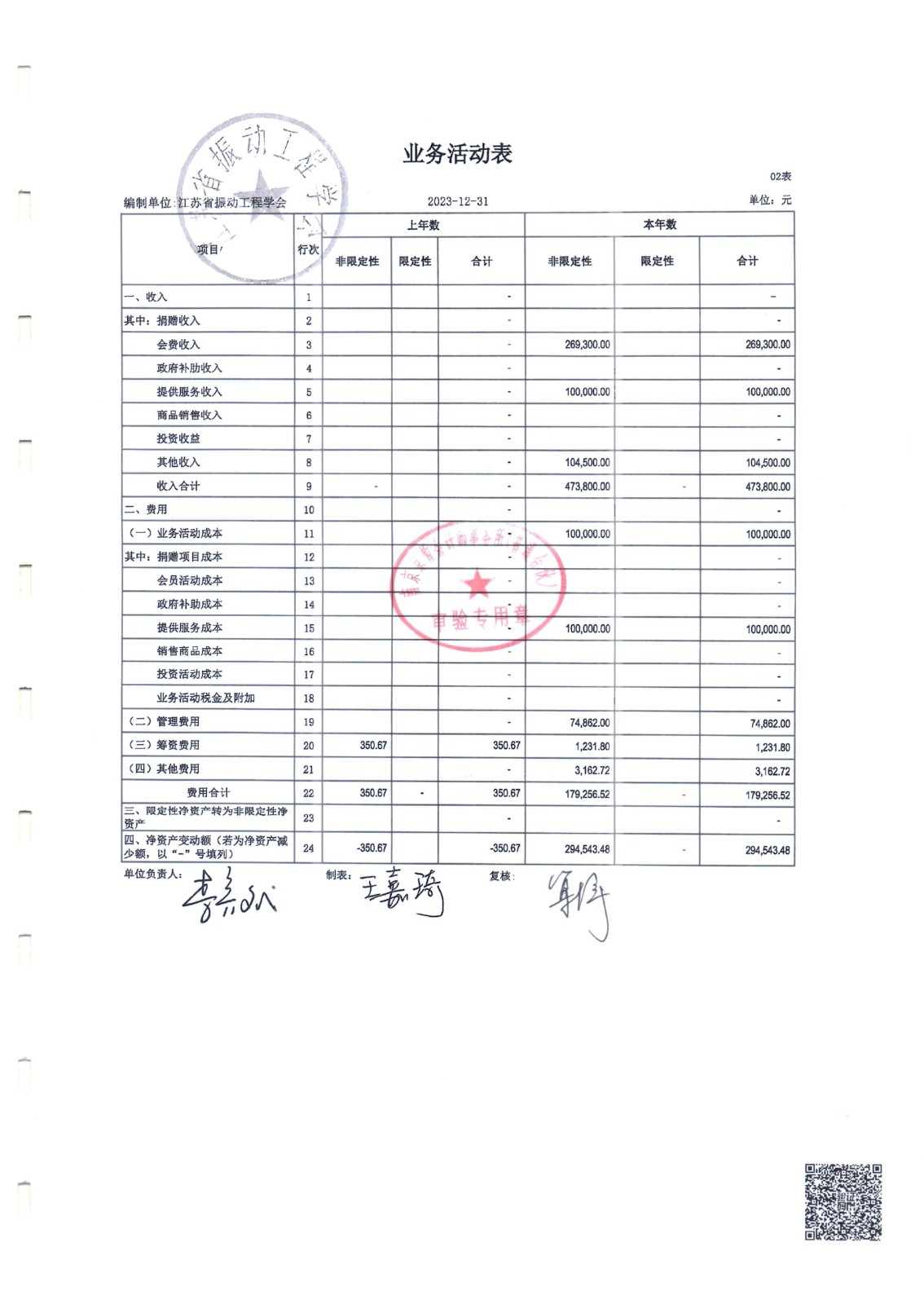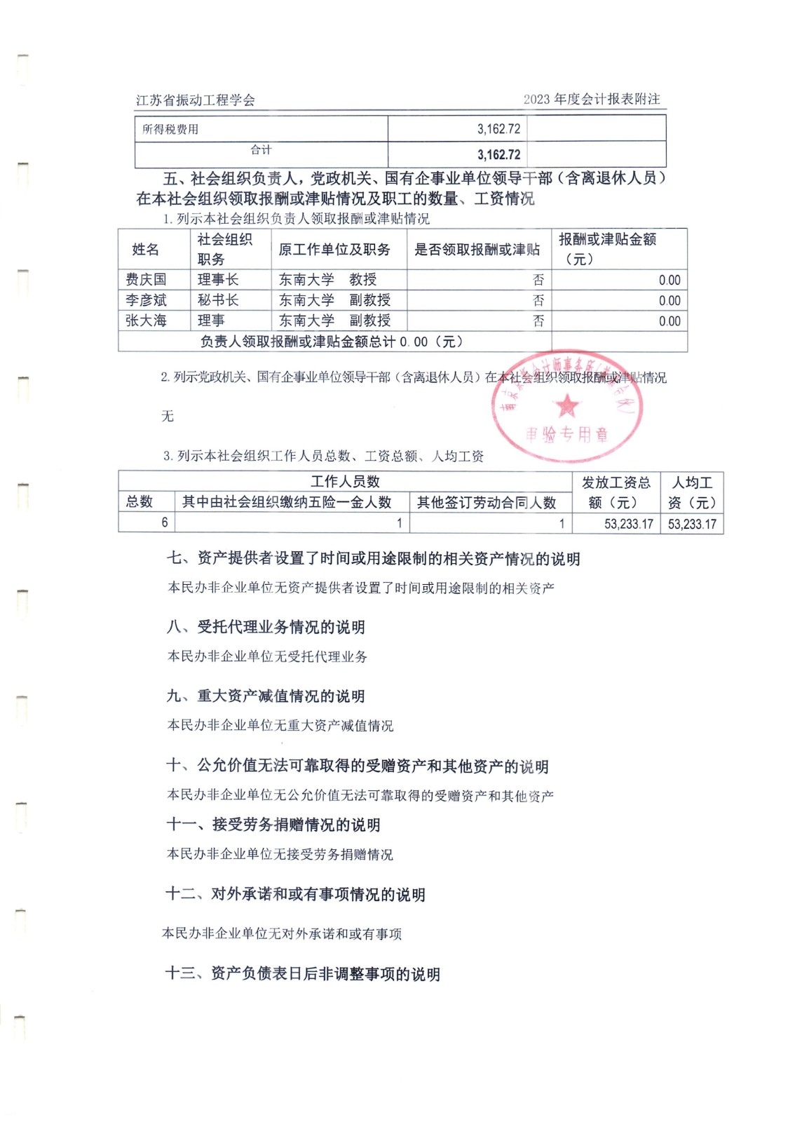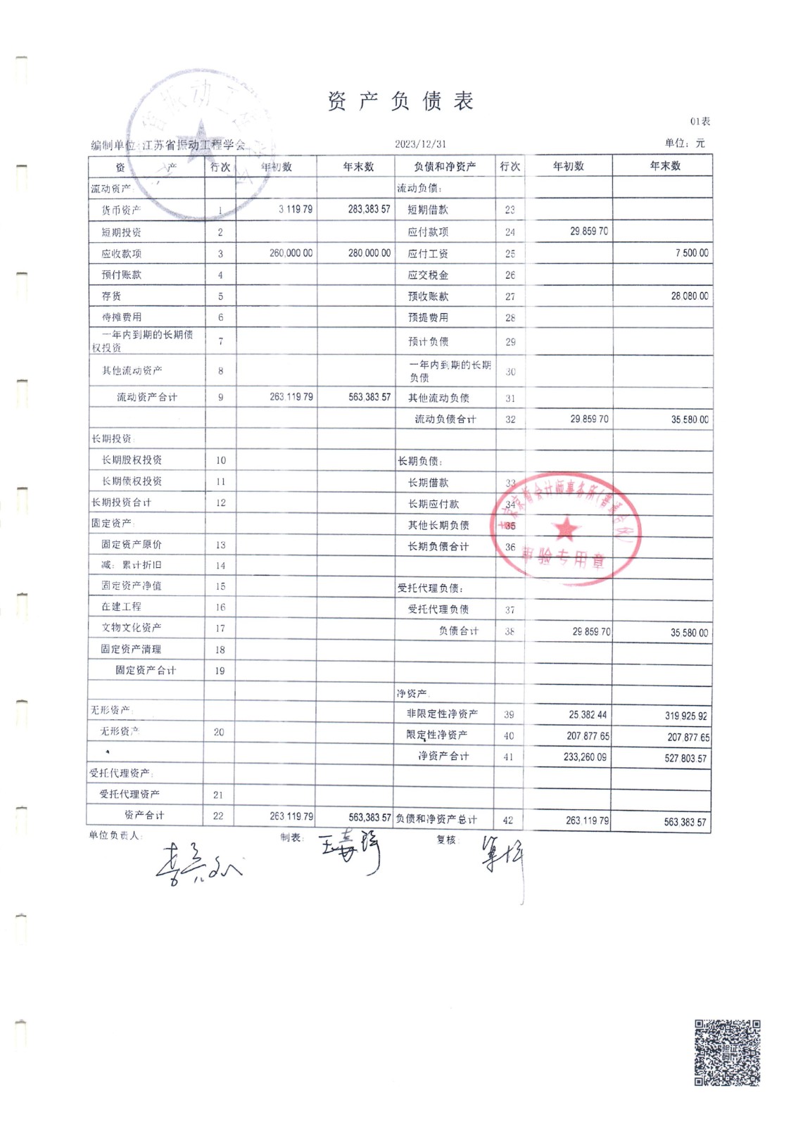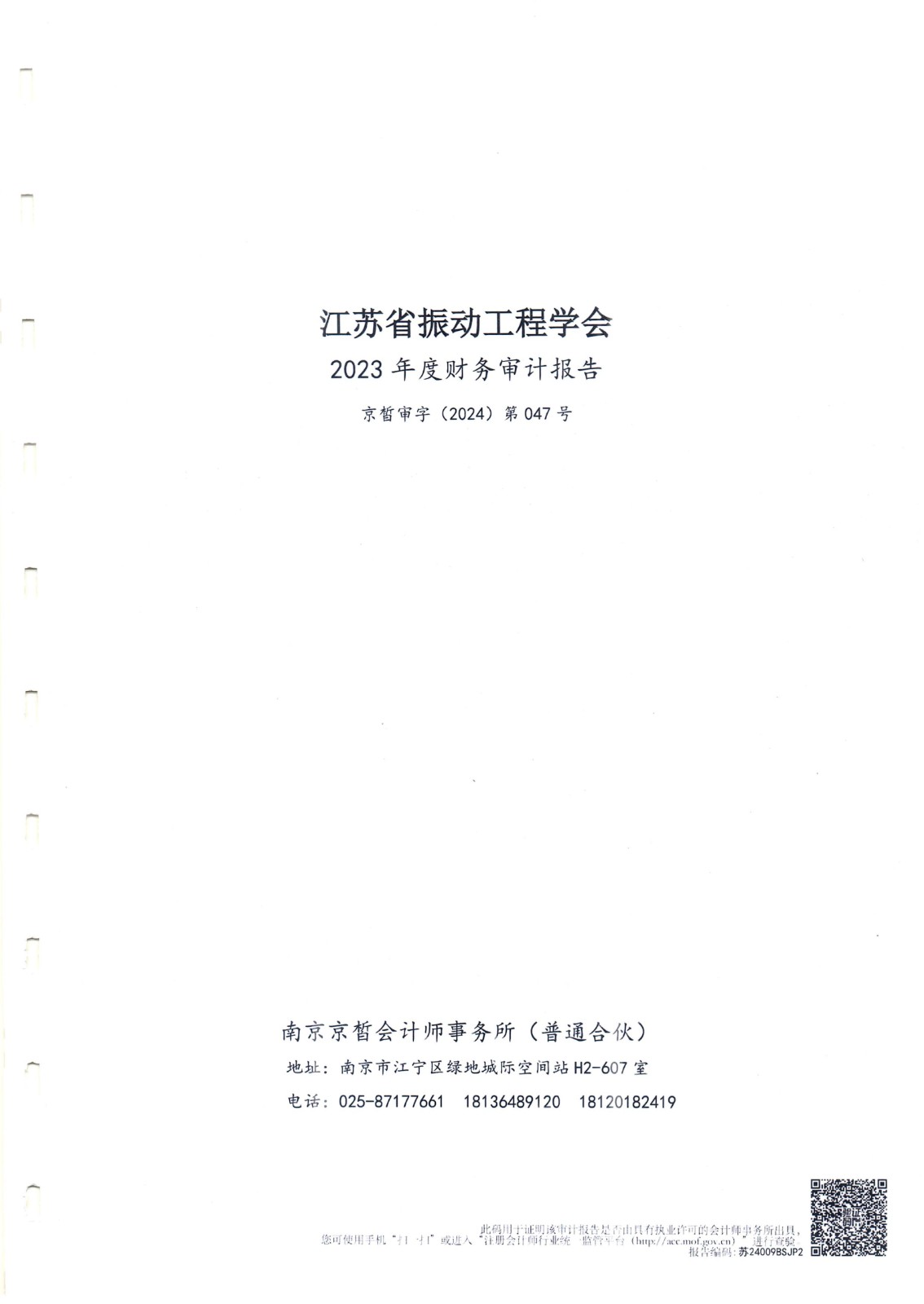 信息公开 | 江苏省振动工程学会2023年财务审计报告