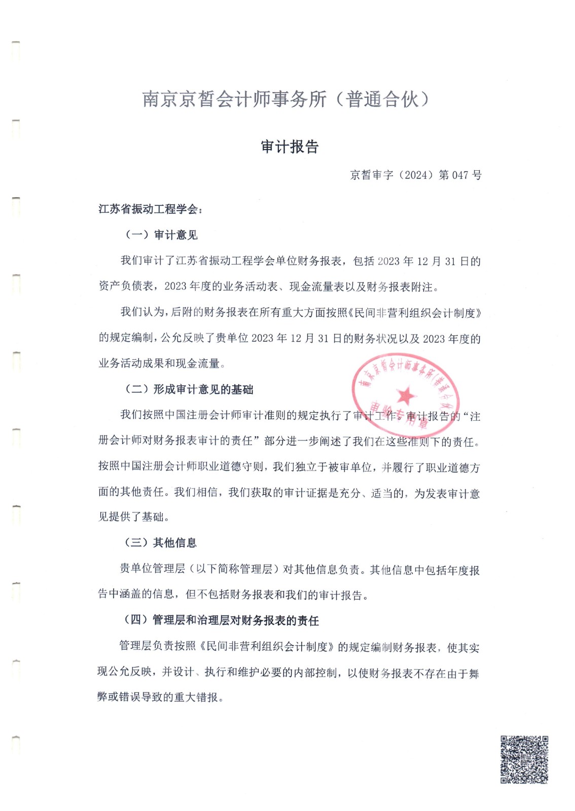 信息公开 | 江苏省振动工程学会2024年度财务审计报告