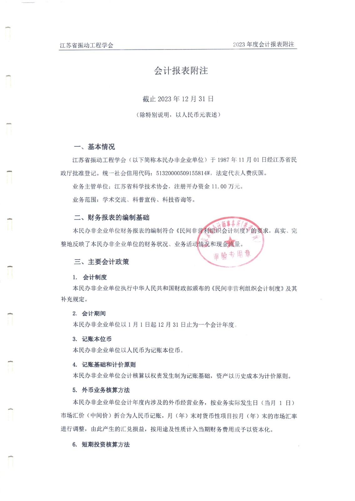 信息公开 | 江苏省振动工程学会2023年财务审计报告